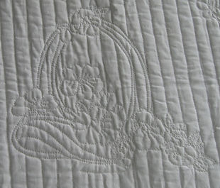 This piece had three delicate whitework embroideries on the original piece. The rest of the quilting I added to compliment the design.
